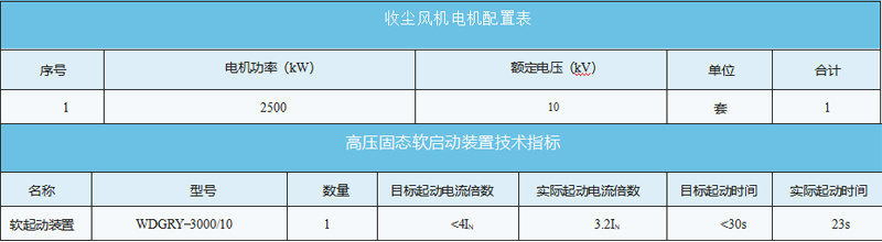 甘肃省某大型水泥厂更新改造除尘项目,受泵站内场地的限制,新增加机组软起装置需安装在高压柜内,因此必须采用一体化高压固态软起动装置高压固态软起一体柜。经现场实地考察及大量的技术论证,并结合目前软起动市场的充分调查与评估,用户最终决定选用我公司WDGRY型一体化高压固态软起动装置,并取得了预期目标。
